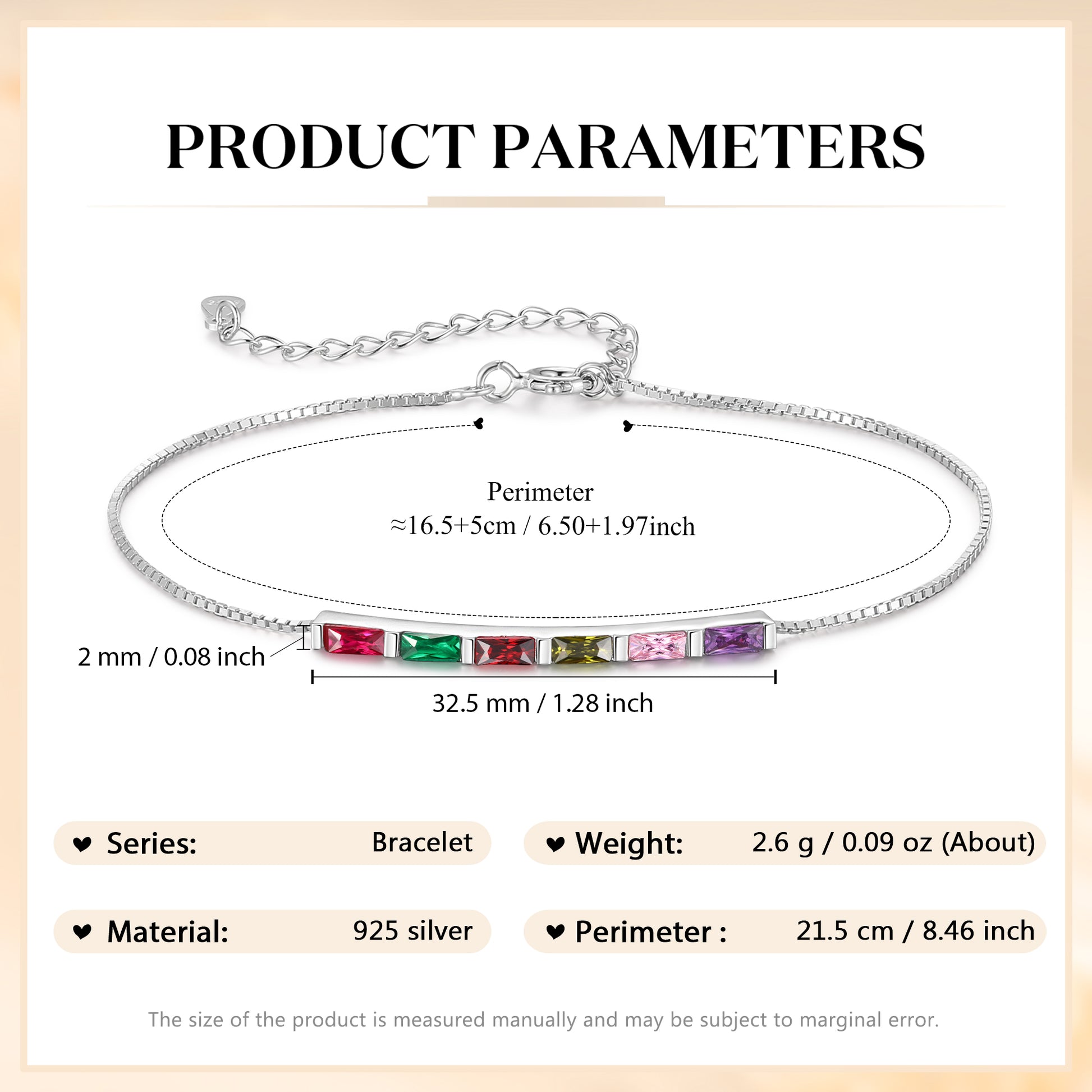 925 Sterling Silver Custom Birthstone Bracelet