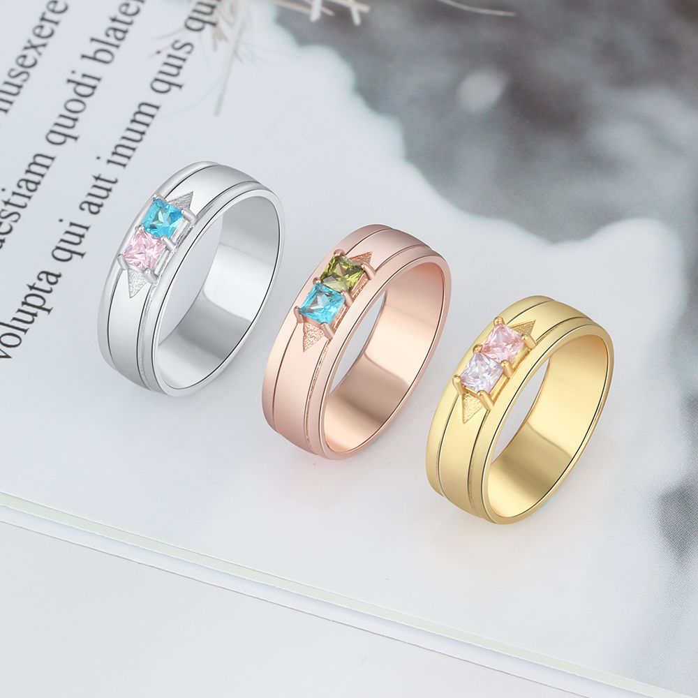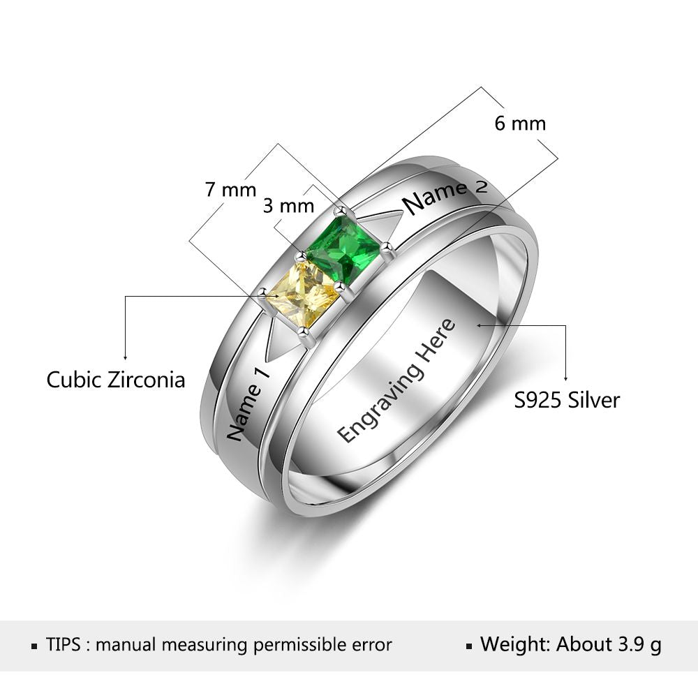This Birthstone & Engraved Sterling Silver Ring is a beautiful and unique piece of jewelry. It is crafted from 925 Sterling Silver and is available in White Gold Plated, Gold Plated, and Rose Gold Plated. The ring is personalized and comes in US sizes 6, 7, 8, and 9. It has a weight of 3.90g, making it a lightweight and comfortable accessory.
