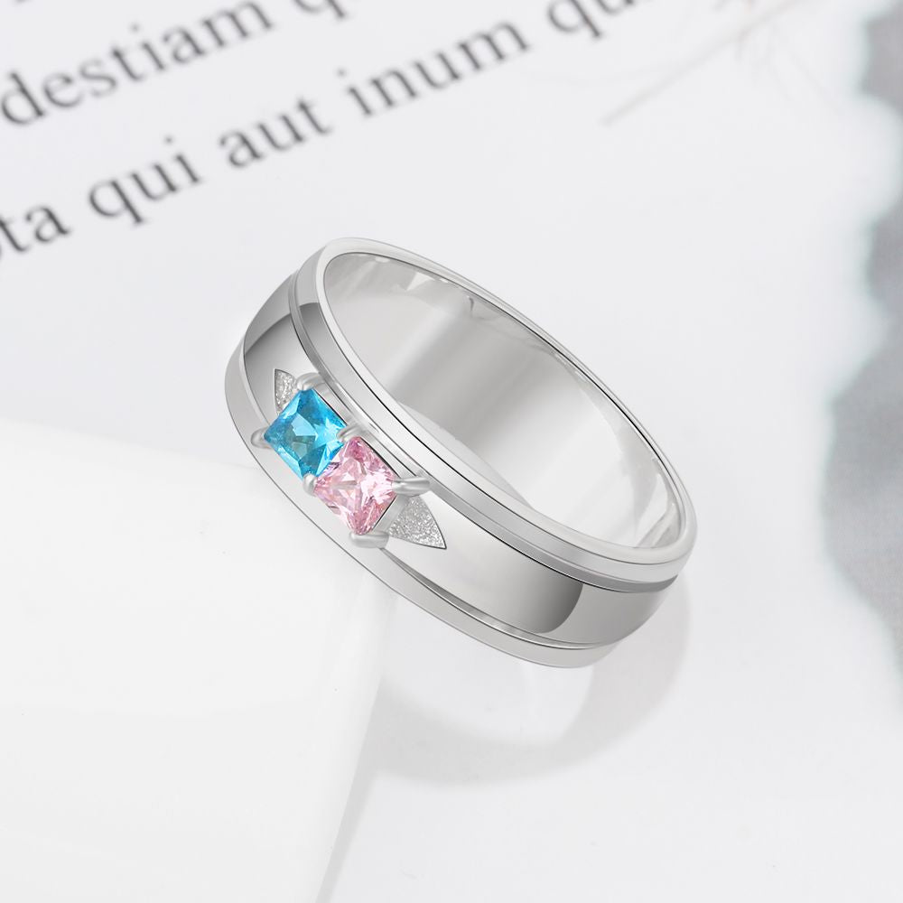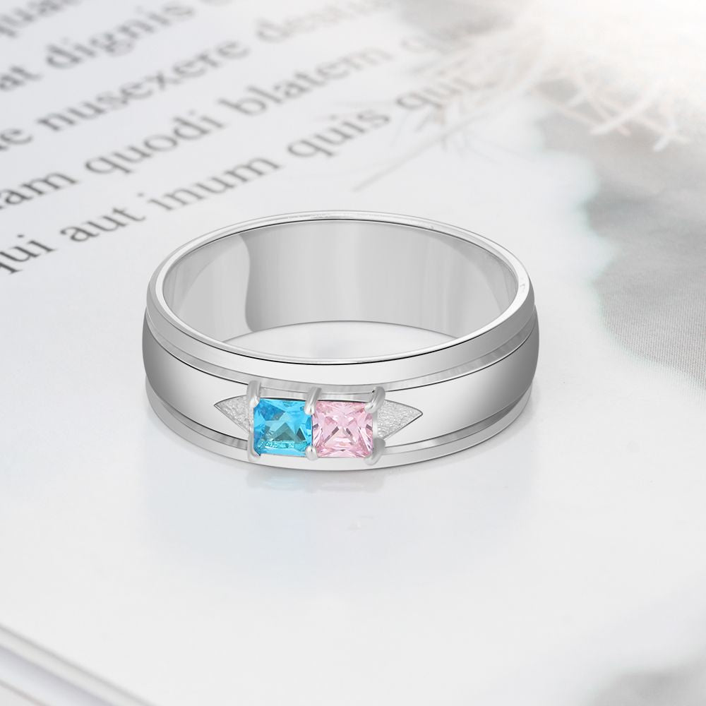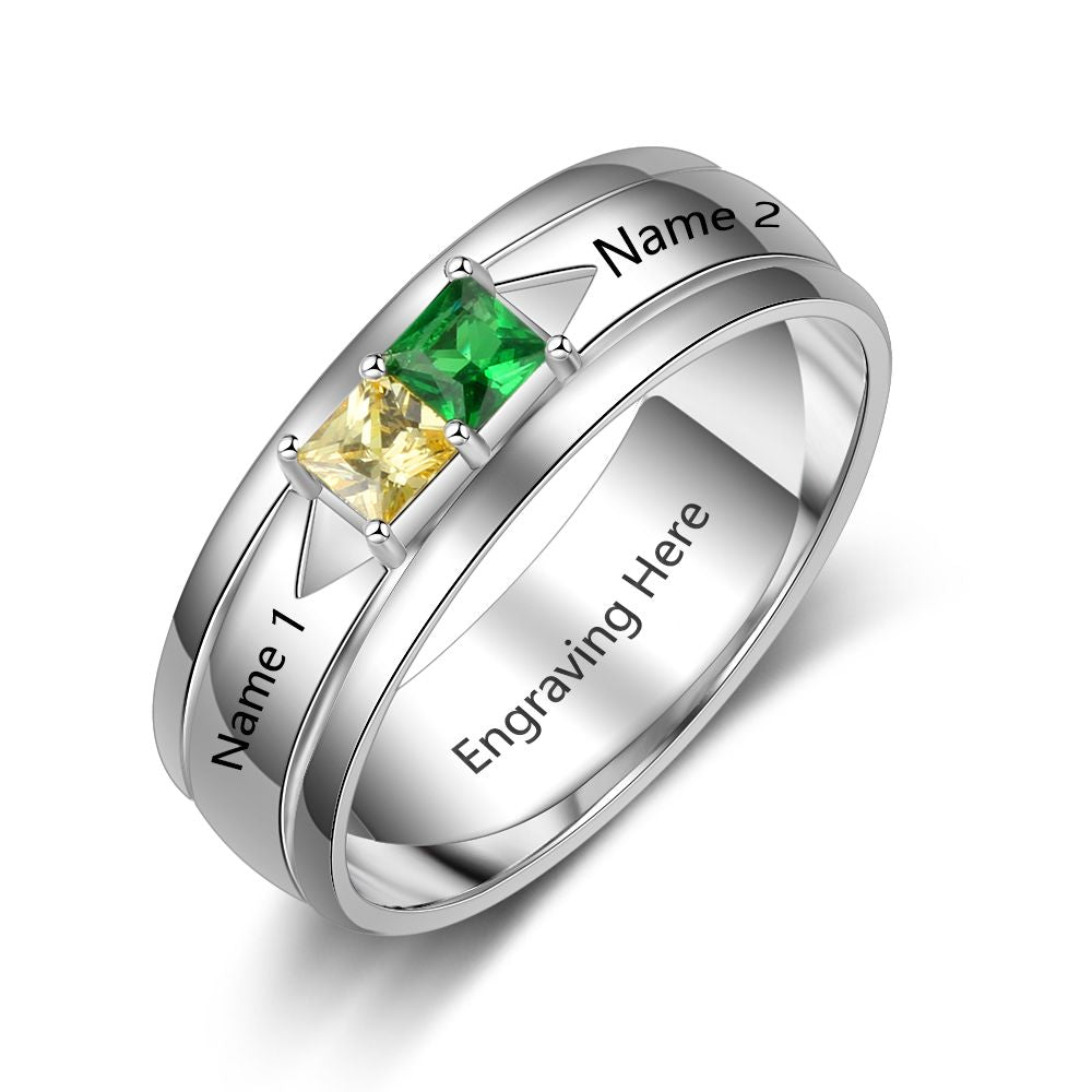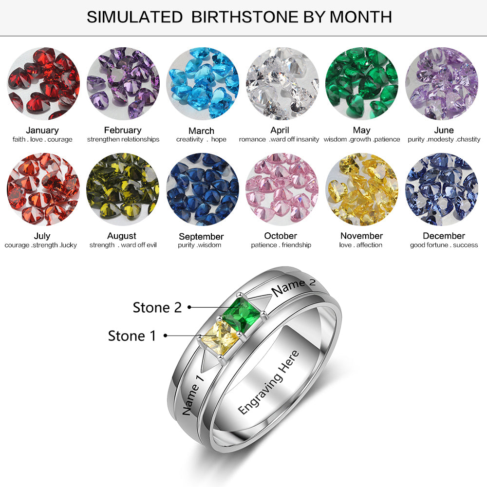 Birthstone & Engraved Sterling Silver Ring