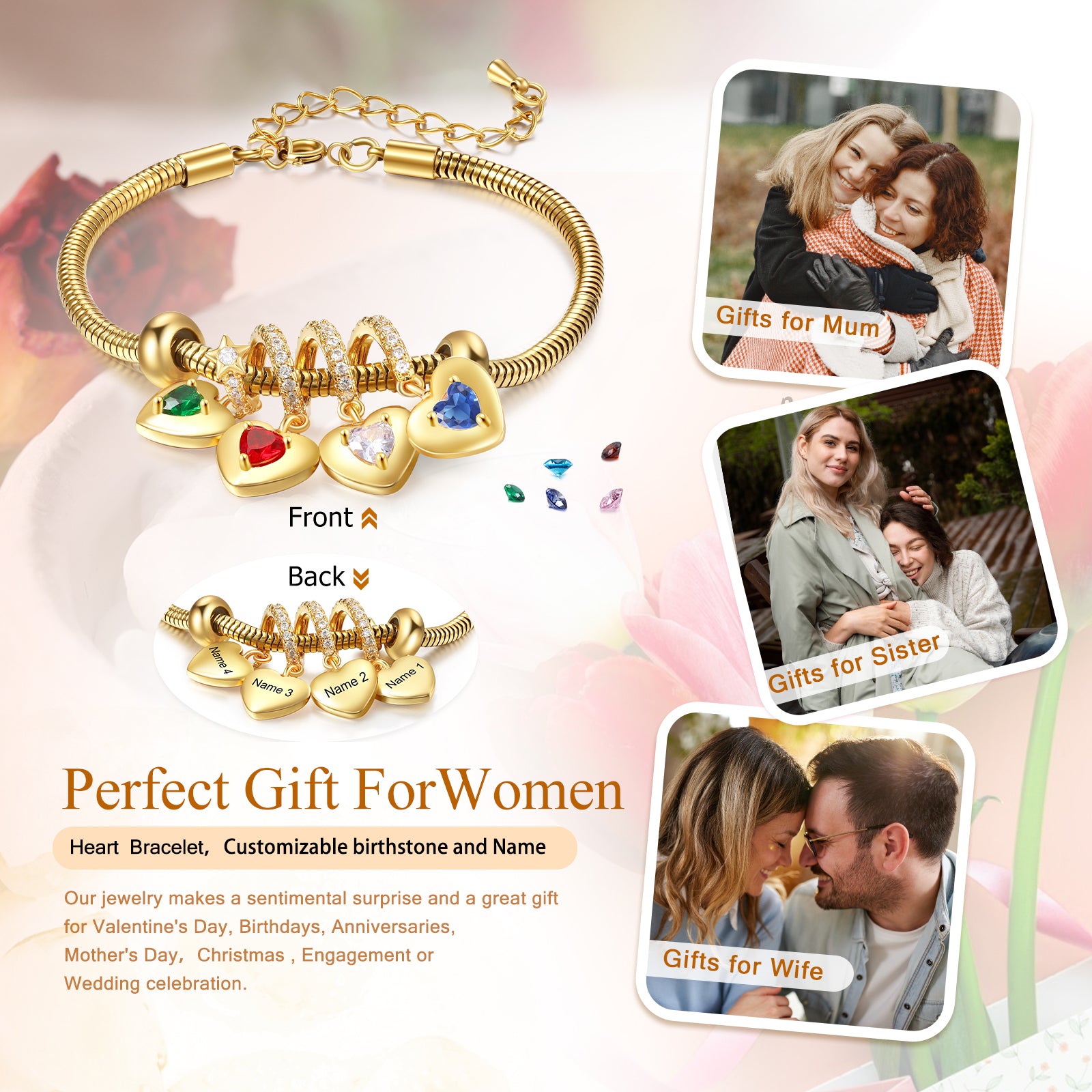 Whether it's your birthstone or that of someone special, this bracelet is a beautiful way to celebrate love, family, and unforgettable moments. Perfect for birthdays, anniversaries, or everyday wear.