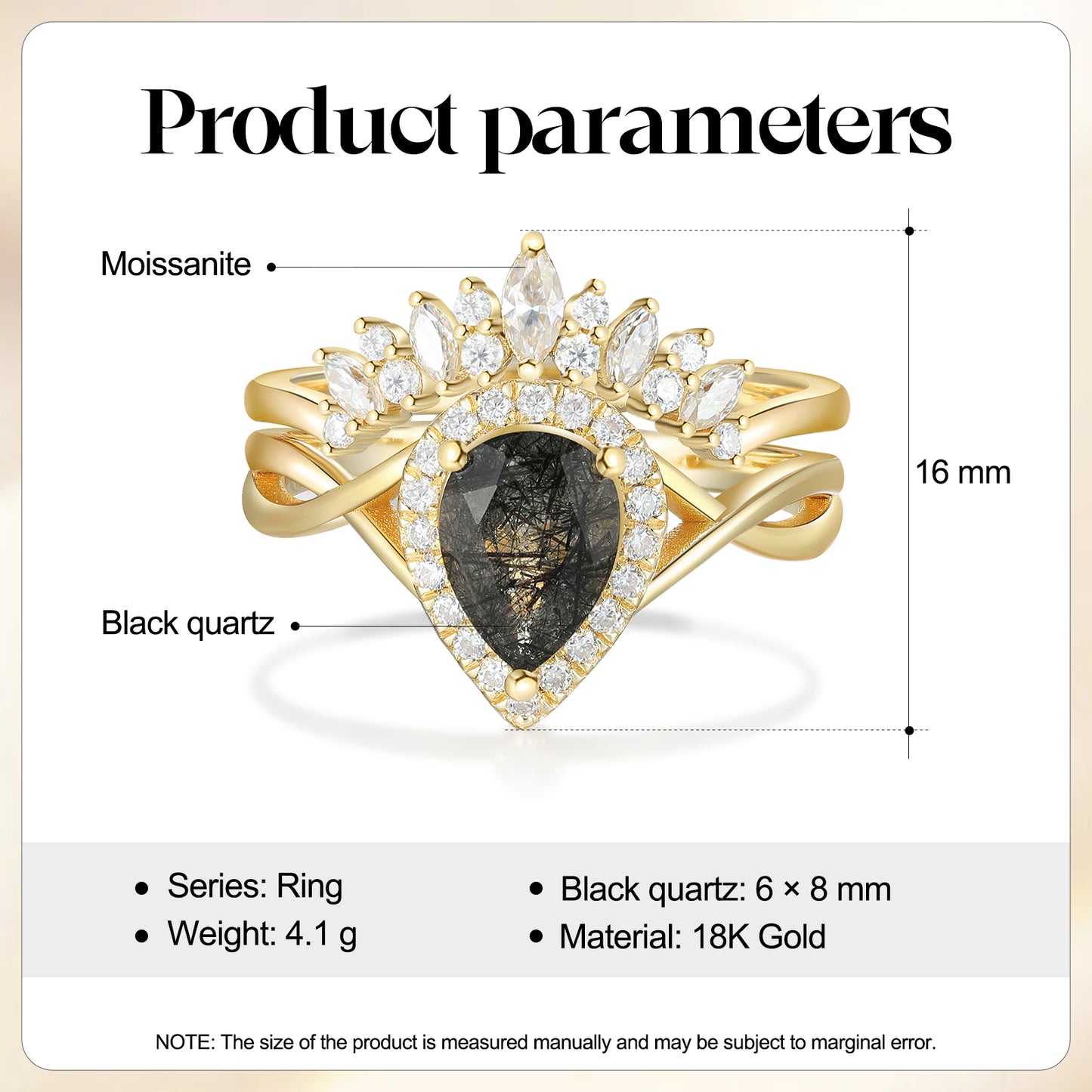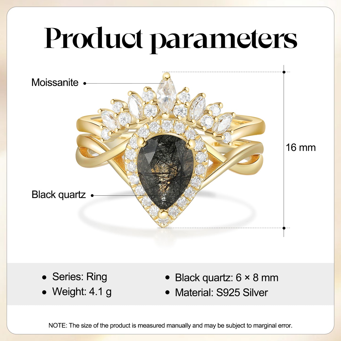 The ring comes in a wide range of sizes, from #4 to #12, ensuring a perfect fit for everyone. Despite its intricate design, the ring is lightweight, weighing only 4.1g, making it comfortable for everyday wear. The centerpiece of the ring is a natural black quartz, adding a touch of mystery and allure to the piece.