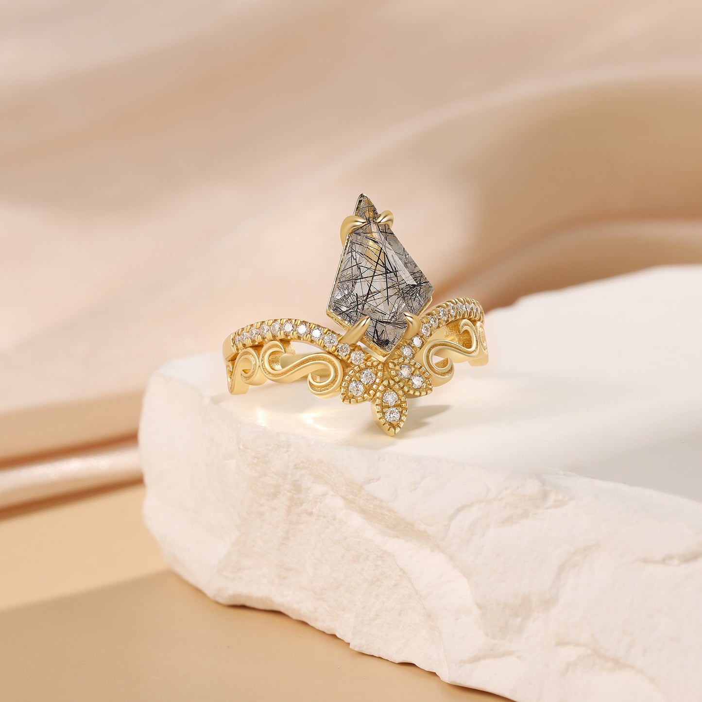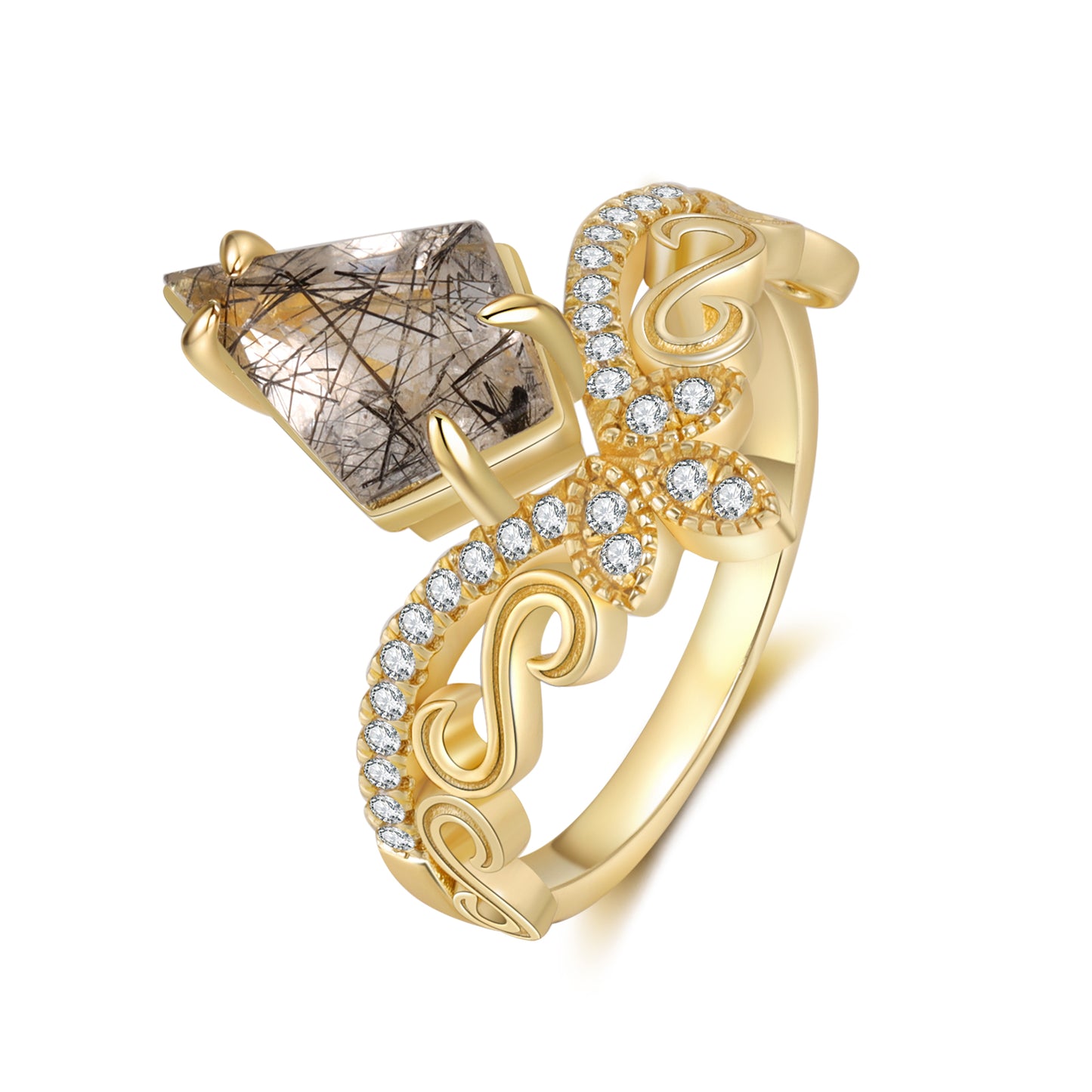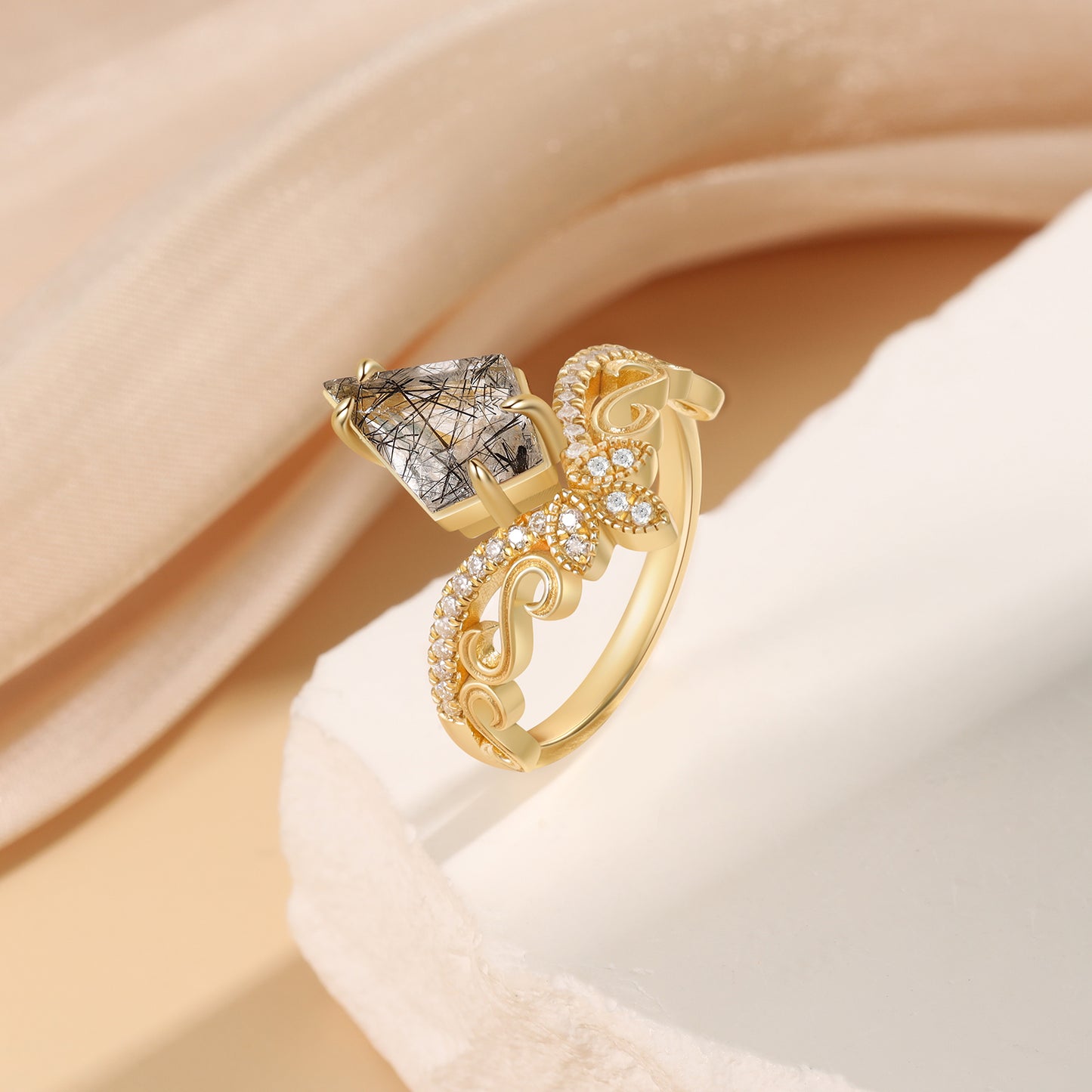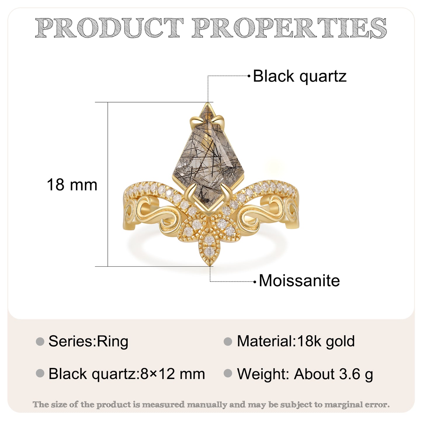 This ring is perfect for any occasion, whether it's a night out with friends or a special event. It's sure to make a statement and add a touch of elegance to any outfit. With its unique design and quality craftsmanship, this K Gold Nutural Black Quartz Ring is sure to be a favorite for years to come.