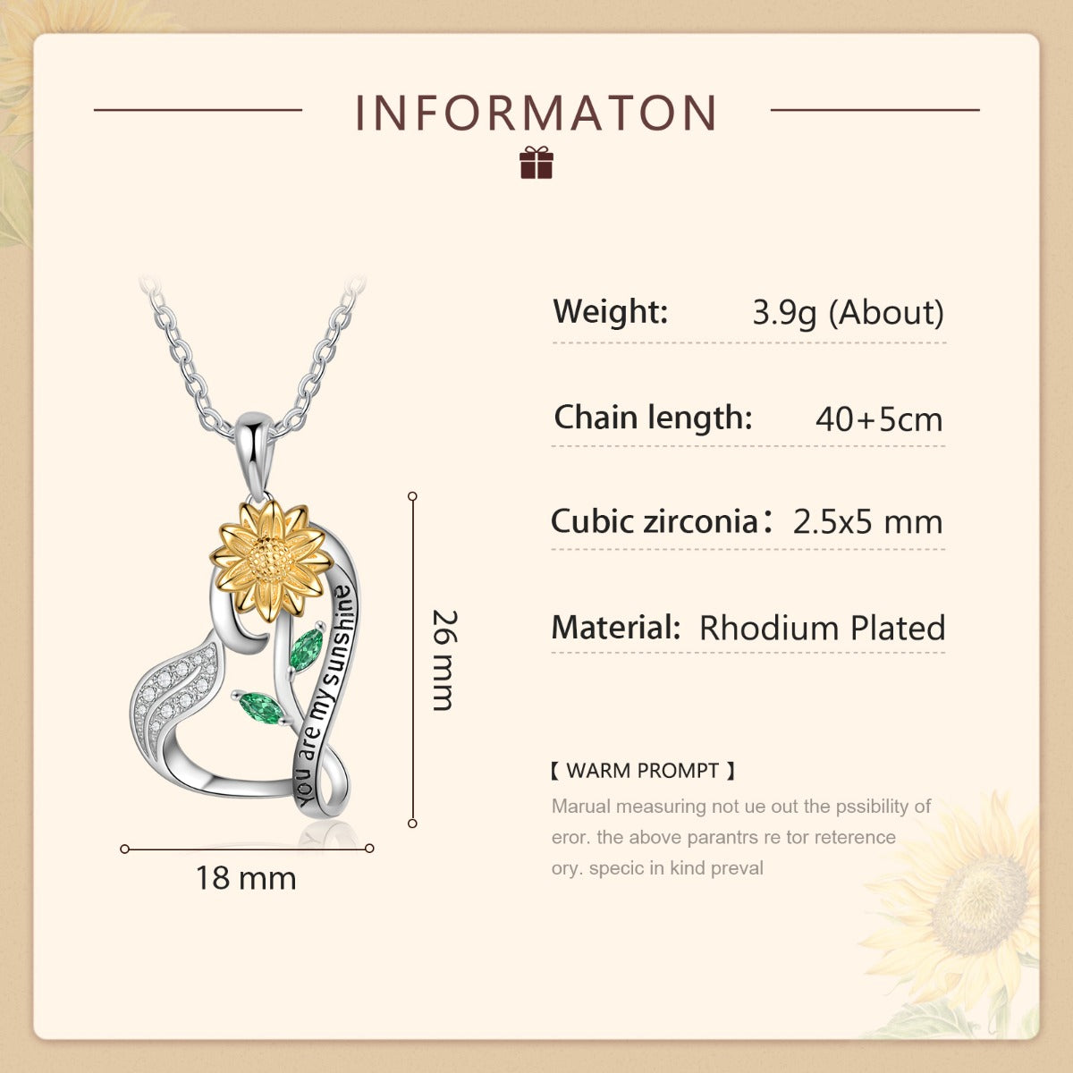 Despite its solid structure, this necklace weighs a mere 3.9g, ensuring comfortable wear throughout the day. Its heart-shaped pendant, adorned with a sunflower design, adds a personalized touch, making it an ideal gift for your loved ones.