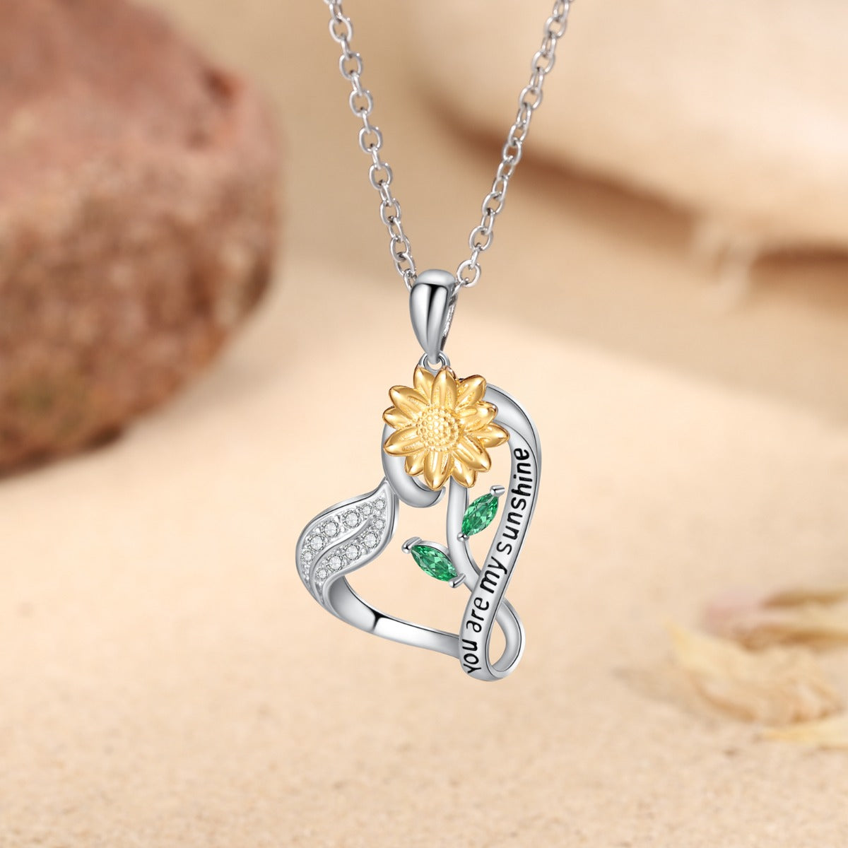 Introducing our Personalized Sunflower Heart Shape Necklace, a perfect blend of elegance and style. This exquisite piece is plated with white gold, adding a touch of luxury to your everyday look.